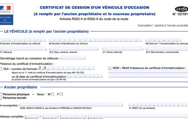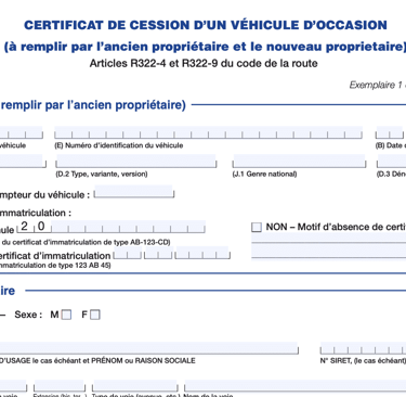Pour la cession d'un véhicule d'occasion, la cession d'un véhicule neuf est un acte important lors de la vente ou de l'achat d'une voiture neuve. Ce document officiel établit la transaction entre le vendeur et l'acheteur, en précisant les informations essentielles sur le véhicule et les parties concernées, pour une vente en toute transparence et conformité.